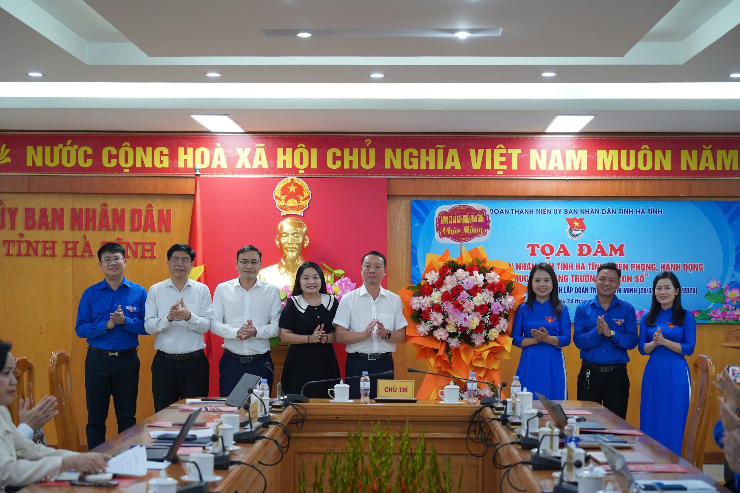 Cũng tại buổi tọa đàm, các đồng chí Thường trực Đảng ủy UBND tỉnh và các đại biểu đã tặng hoa chúc mừng Đoàn Thanh niên UBND tỉnh nhân kỷ niệm 95 năm ngày thành lập Đoàn Thanh niên Cộng sản Hồ Chí Minh (26/3/1931-26/3/2026).