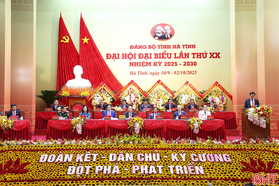 Sáng 2/10, tại Trung tâm Văn hóa - Điện ảnh và Xúc tiến du lịch tỉnh, Đại hội đại biểu Đảng bộ tỉnh Hà Tĩnh lần thứ XX nhiệm kỳ 2025 - 2030 bước sang ngày làm việc thứ 3 với nhiều nội dung quan trọng và tiến hành phiên bế mạc.