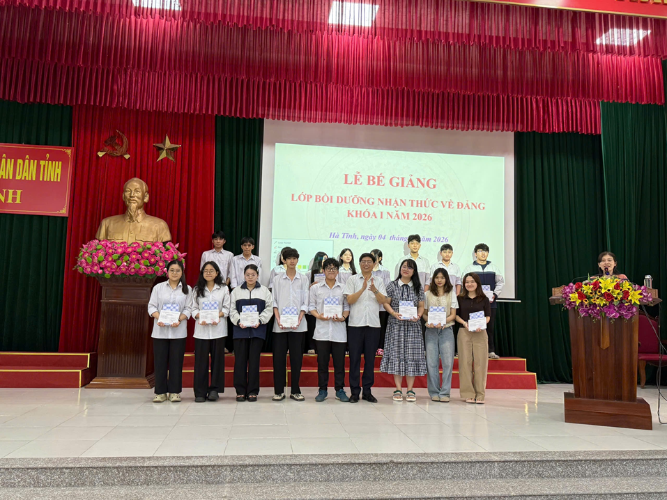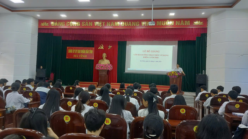 Lớp Bồi dưỡng nhận thức về Đảng khóa I năm 2026 được tổ chức từ ngày 02 đến hết ngày 04/4/2026, gồm 133 học viên là các quần chúng ưu tú đến từ Đảng bộ Trường THPT Chuyên Hà Tĩnh và Đảng bộ Trường Cao đẳng Y tế Hà Tĩnh. Trong thời gian 03 ngày các học viên đã được các giảng viên kiêm chức của Đảng ủy UBND tỉnh truyền đạt 05 chuyên đề theo hướng dẫn của Ban Tuyên giáo và Dân vận Trung ương đó là: Khái lược lịch sử Đảng Cộng sản Việt Nam; Cương lĩnh xây dựng đất nước trong thời kỳ quá độ lên chủ nghĩa xã hội; Nội dung cơ bản của Điều lệ Đảng Cộng sản Việt Nam; Học tập và làm theo tư tưởng, đạo đức, phong cách Hồ Chí Minh; Phấn đấu trở thành đảng viên Đảng Cộng sản Việt Nam.