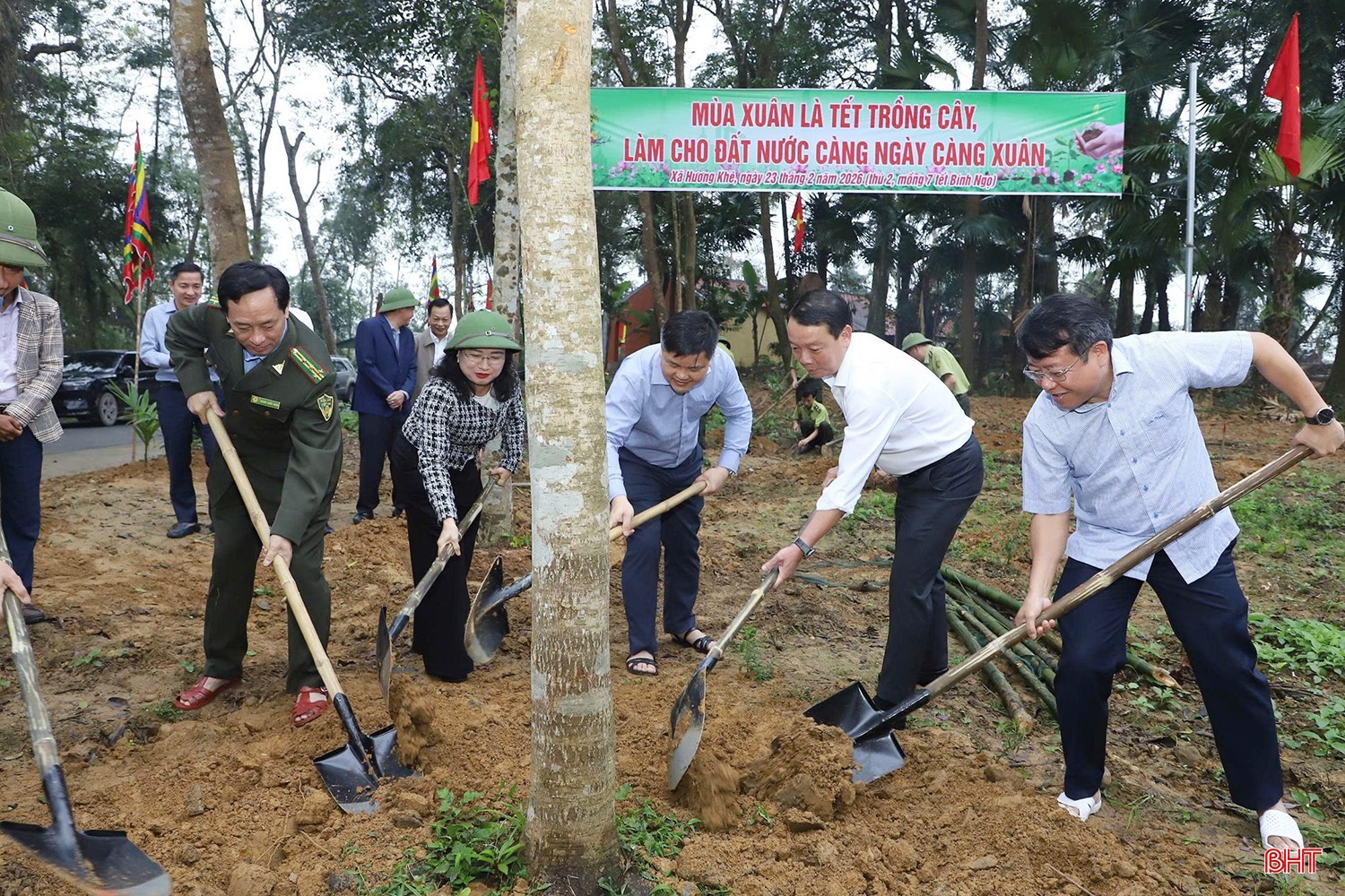 Chủ tịch UBND tỉnh Phan Thiên Định tham gia trồng cây xanh đầu xuân tại xã Hương Khê.
