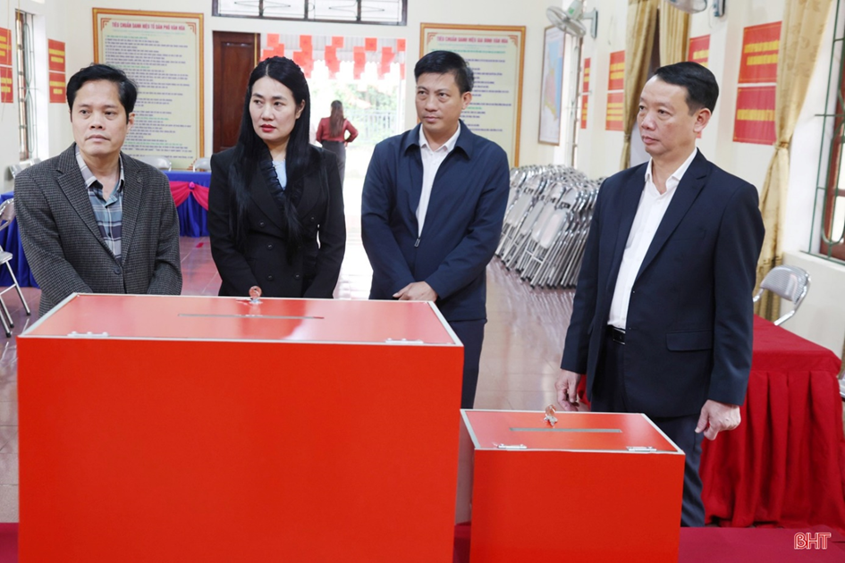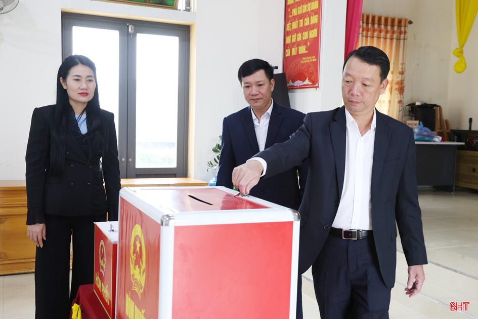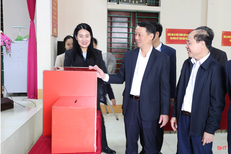 Đồng chí Phan Thiên Định – Phó Bí thư Tỉnh ủy, Chủ tịch UBND tỉnh, Phó Trưởng ban Chỉ đạo Bầu cử tỉnh và đoàn công tác đã đi kiểm tra khu vực bỏ phiếu 13 (thôn Tân Giang), khu vực bỏ phiếu số 2 (thôn Phú Minh) thuộc xã Kỳ Anh; khu vực bỏ phiếu số 12 (TDP Hưng Lợi) và khu vực bỏ phiếu số 14 (TDP Hưng Thịnh) thuộc phường Sông Trí; khu vực bỏ phiếu số 10 (TDP Hồng Hải) và khu vực bỏ phiếu số 18 (TDP Tân Tiến) thuộc phường Hoành Sơn.