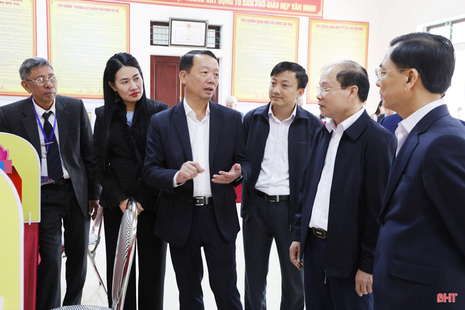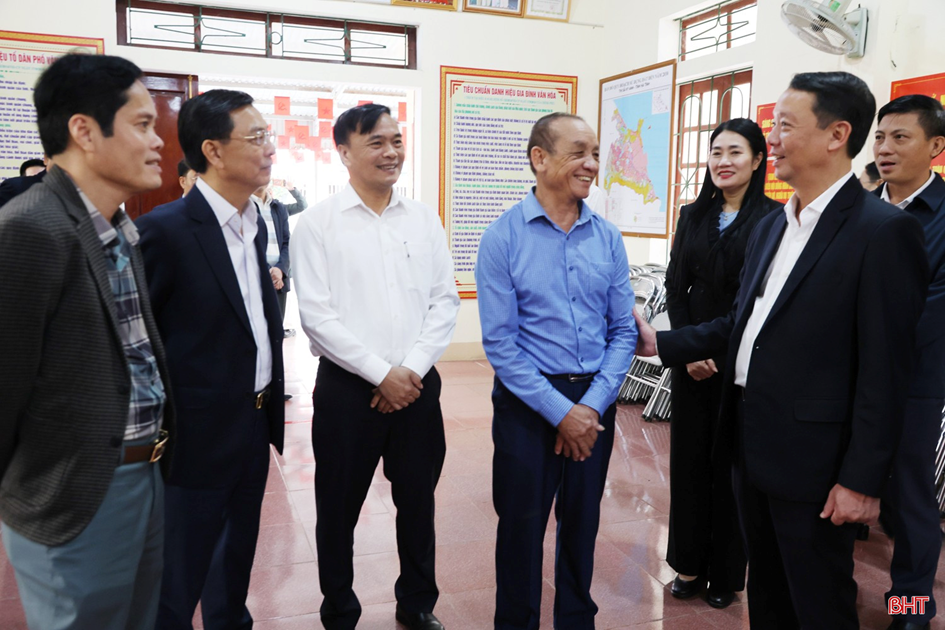Chủ tịch UBND tỉnh Phan Thiên Định và các thành viên đoàn kiểm tra công tác bầu cử tại xã Kỳ Anh.