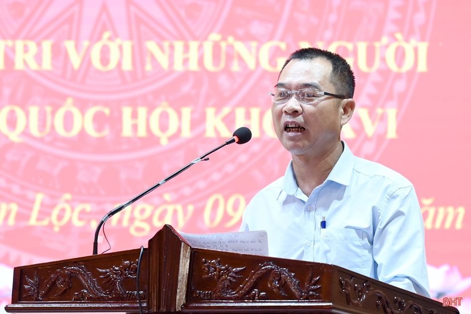 Cử tri Trần Huy Thắng - thôn Đông Huề, xã Can Lộc phát biểu tại hội nghị.