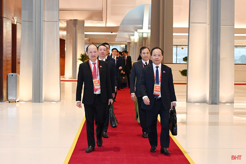 Đại biểu đoàn Hà Tĩnh do Bí thư Tỉnh ủy Nguyễn Duy Lâm làm trưởng đoàn đến dự phiên thảo luận tại hội trường về các văn kiện Đại hội.